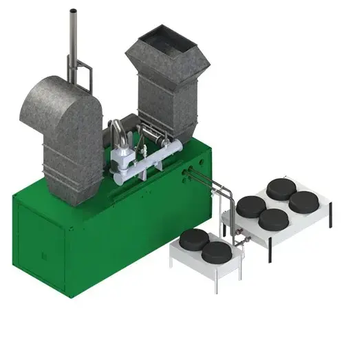 Encapsulation of the entire CHP, easily accessible through doors and maintenance hatches, 1.5 mm galvanized steel sheets on the outside, 1.0 mm galvanized perforated sheet metal on the inside.