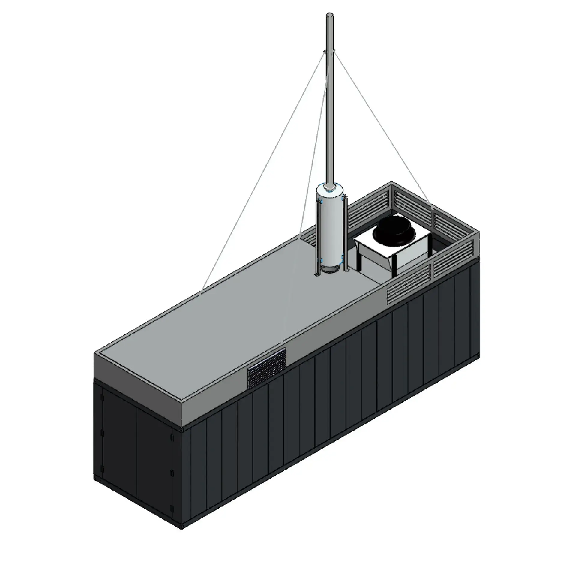 Like Container Basic, optimized design, cooling units as well as air inlets and outlets integrated in its roof.